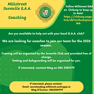 Millstreet GAA wishes her the very best in her future endeavours and extends heartfelt thanks for her service.