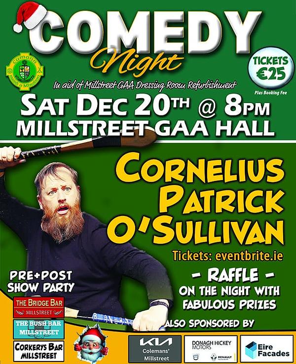 The countdown is on! In just 10 days, we celebrate a great Christmas night out in town with comedian Cornelius Patrick O’Sullivan at the GAA Hall at 20:00